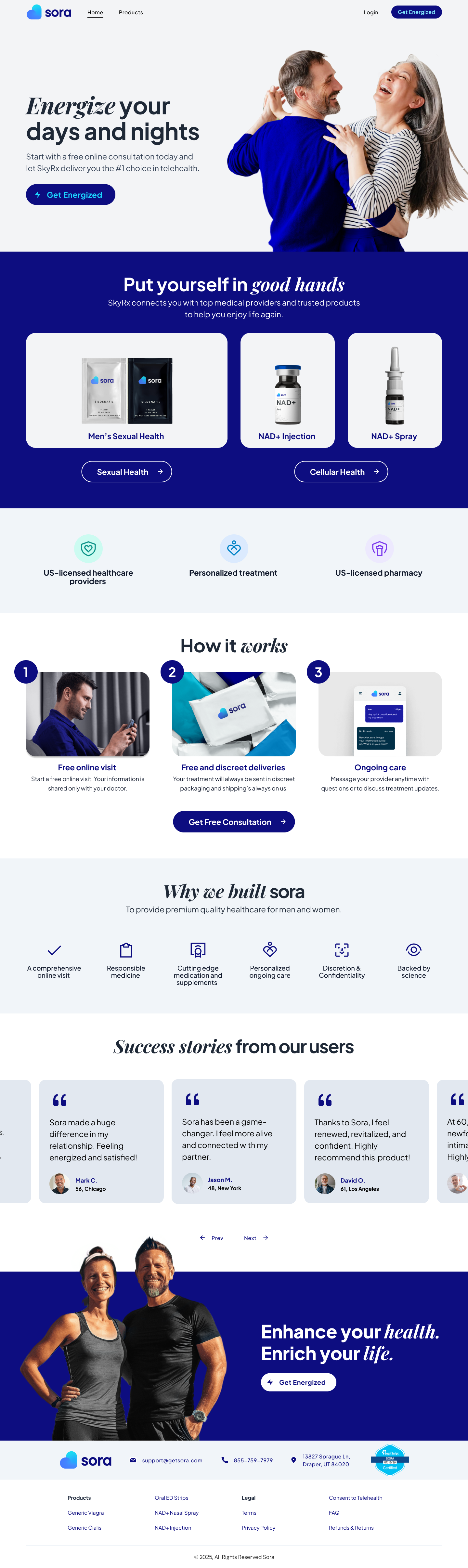 Sora is a digital healthcare platform offering discreet, subscription-based treatments, similar to Ro, Hims, and Nurx.